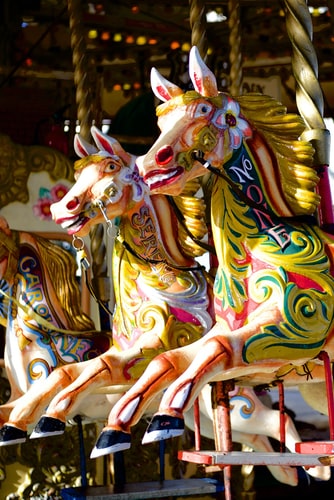 Oh I too love the funfair, don’t get me wrong. It’s true I’m not all that keen on the Helter Skelter or those swingy things that send you hurtling through the skies at breakneck speed. And the Dodgems – well they are just plain dangerous if you ask me. But find me the Hook a Duck stand to try my luck with, or a colourful Carousel with painted horses and I’ll happily hop on and go round all day.